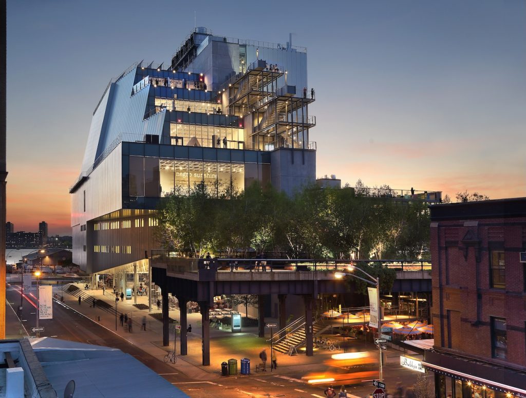 La rapida crescita della collezione rese necessario, negli anni Sessanta, un nuovo spazio. Nel 1963 l’architetto Marcel Breuer progettò la nuova sede tra Madison Avenue e la 75th Street: un edificio in stile brutalista con una facciata a gradoni che si allargava verso l’alto, diventato col tempo l’opera più riconoscibile del progettista, pur non essendo inizialmente apprezzata dai newyorkesi. Nel 2015 il Whitney si trasferì nella sede attuale, progettata da Renzo Piano nel quartiere del Meatpacking District, affacciata sulla celebre High Line. L’edificio, inaugurato nella primavera di quell’anno, offrì per la prima volta spazi adeguati a ospitare installazioni, performance e video art su larga scala.